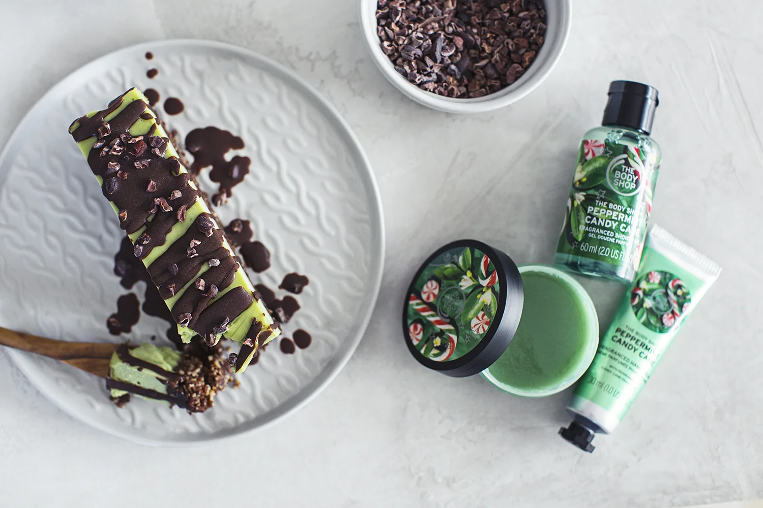 Hey everyone! It’s Rita here. Faster than we’d expected, the time has come when Santa Clauses, bright lights and shimmering stars start popping up in every corner. Christmas arrived extra early to our house this year, when we were delivered a festive little jute bag from The Body Shop, filled with a few goodies from their new Peppermint Candy Cane collection. From the whole lot of their products that we’ve worked with, these are, by far, my ultimate favourite. In case you haven’t been keeping up with this partnership of ours, so far we’ve created 4 recipes inspired by products from The Body Shop: an Anti-Inflammatory Ginger & Turmeric Syrup, a Coffee & Pear Coffee Cake, a Vegan Mango Cashew “Yogurt” and Almond and Oat Milks. This new collection could not smell any fresher: just a tiny whiff and you’ll be getting all the Christmas feels from the delicious peppermint scent. The whole collection is vegan, apart from the body butters (which contain beeswax), and there are far more products than the ones pictured here.