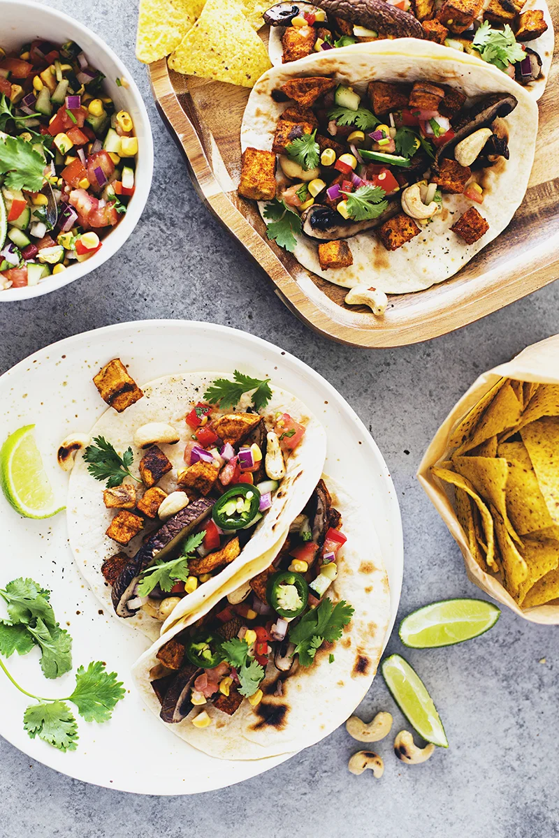 TACOS DE BATATA DOCE & COGUMELOS PORTOBELLO